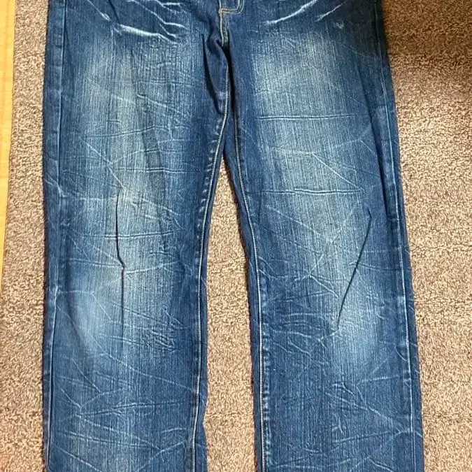 y2k 스트레이트 데님 다크 블루 페이드 가공