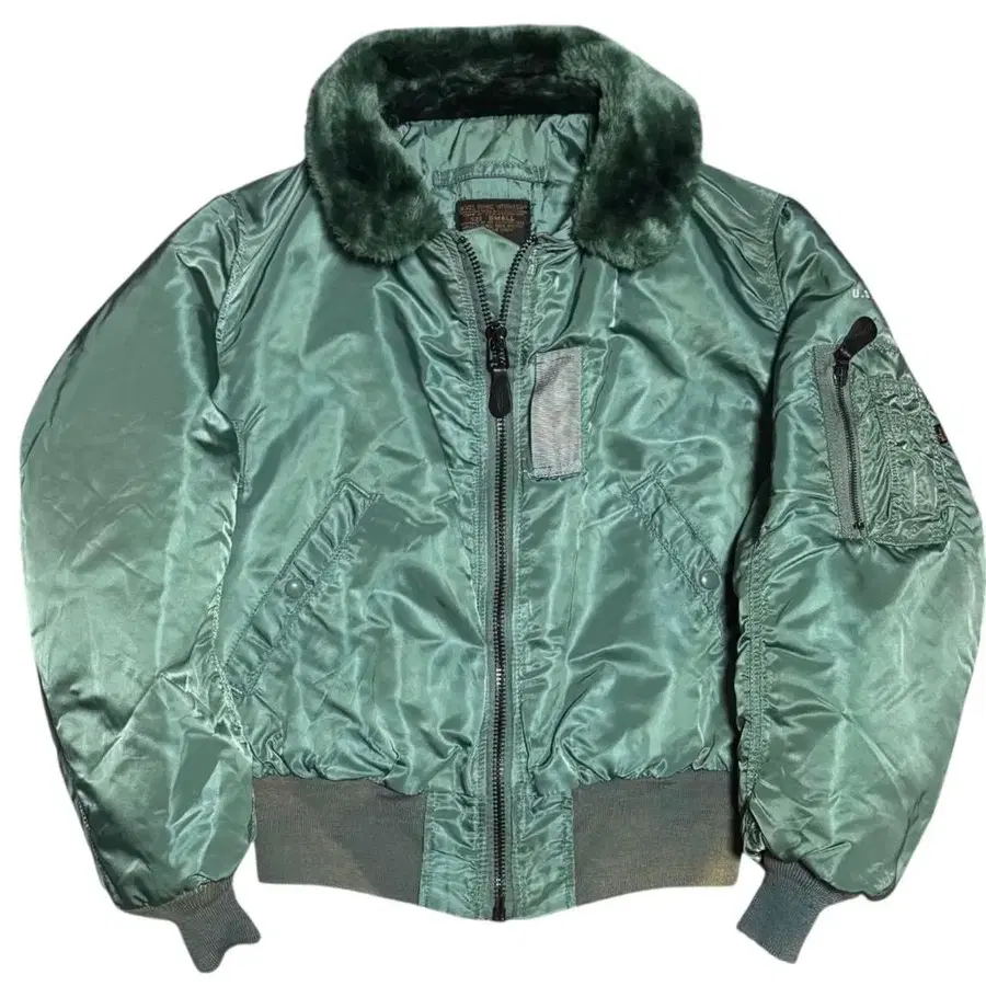 분위기 발군 ALPHA INDUSTRIES 50s 복각 백 자수 USA제 B-15D 플라이트 자켓 세이지 그린 S 사이즈