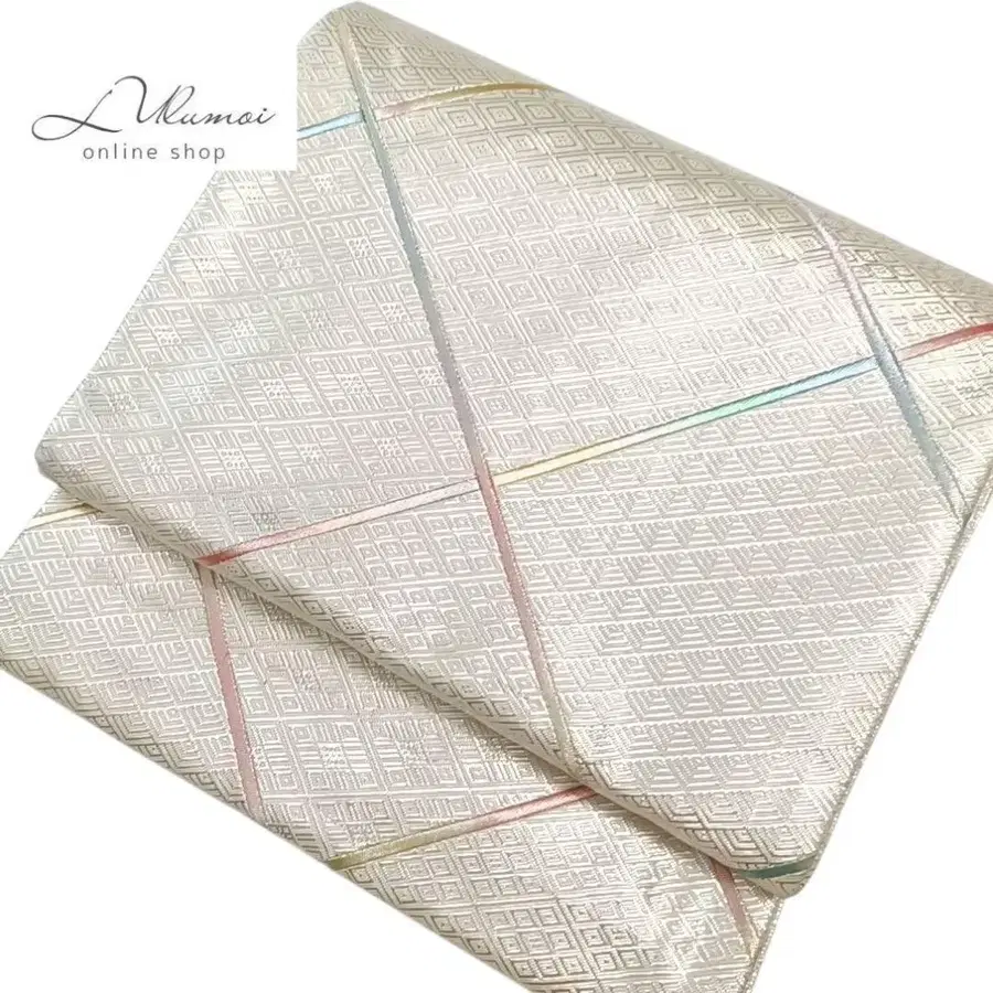 • LULU25 후쿠로 오비 츠지가하나 지문 부풀림 직조 꽃 화이트 실버