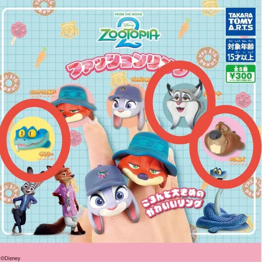 주토피아 패션 반지 3개 세트 파우버트 게리 니블스