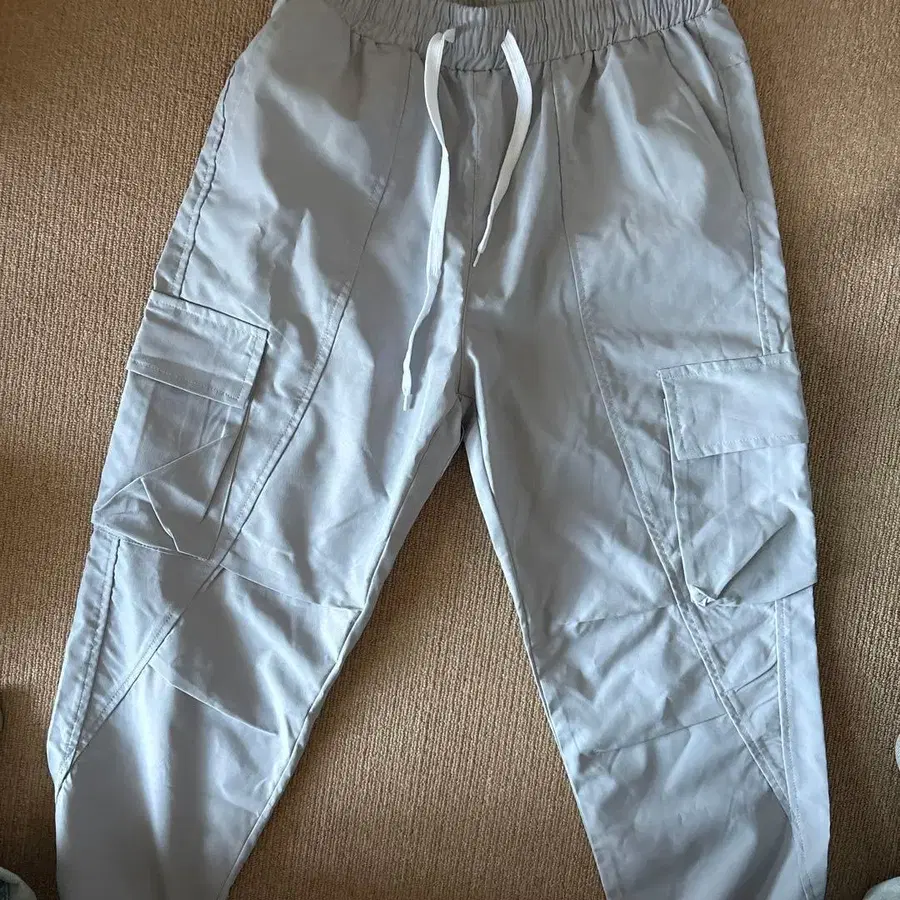 라이트 그레이 카고 팬츠 허리밴딩