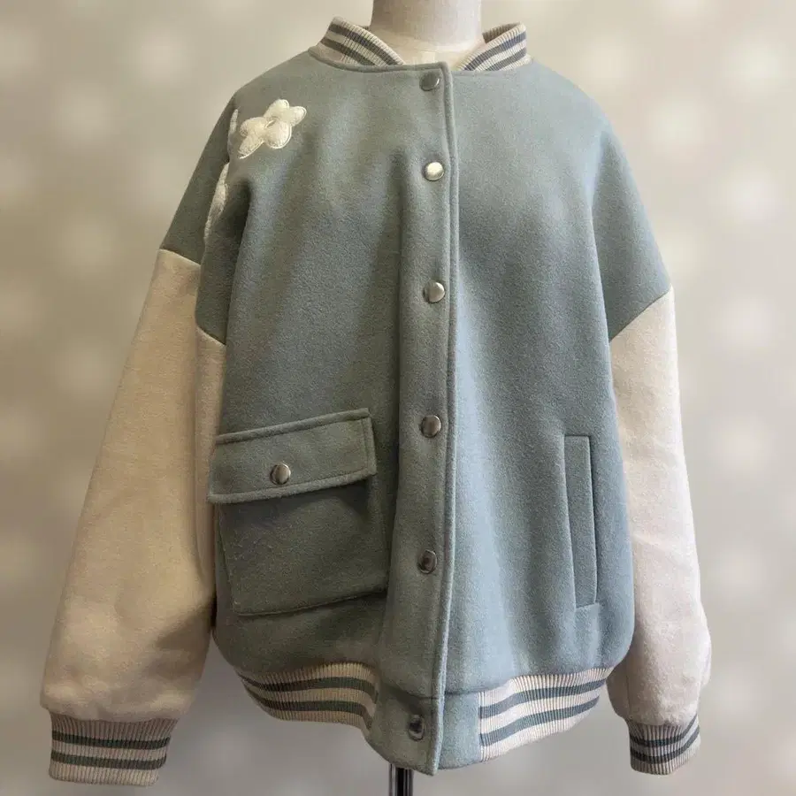 merry jenny 플라워 바시티 자켓 파일 자수 꽃 아이스 블루