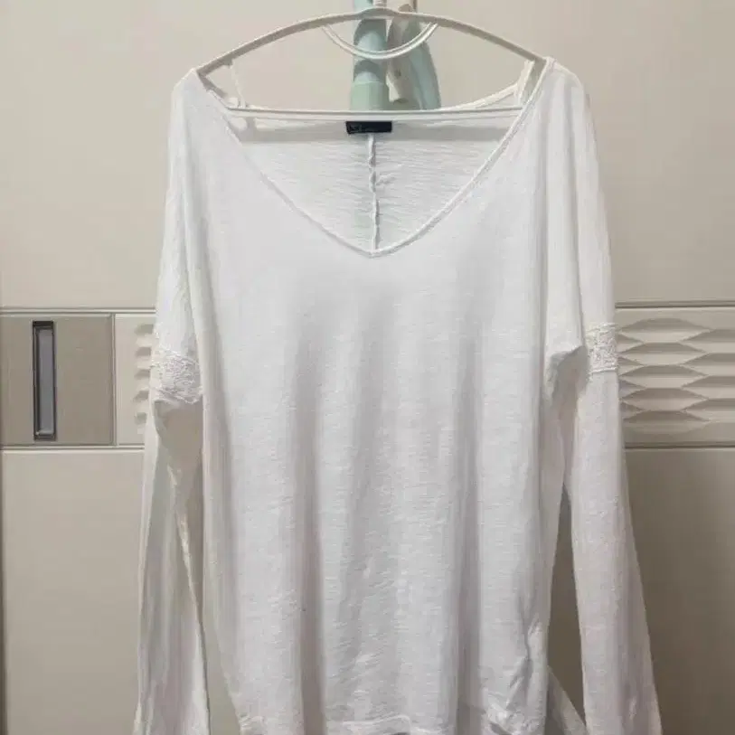 화이트 V넥 긴팔 티셔츠 허리 리본 포함