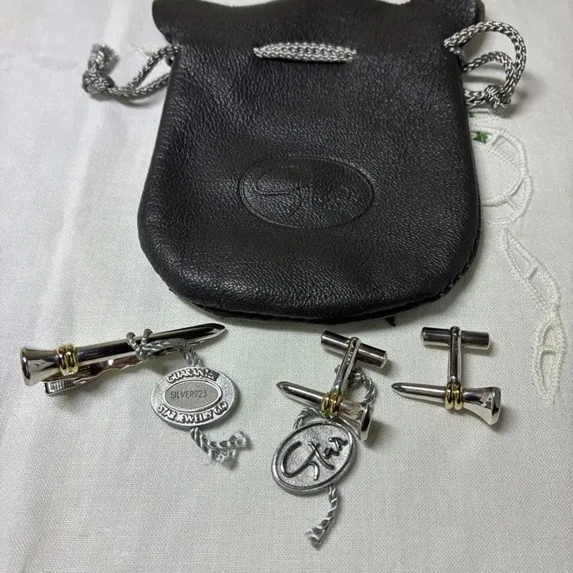 Tee 주얼리 실버 넥타이핀, 커프스 세트