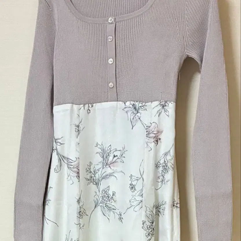 머큐리 듀오 가디건 라이크 니트 도킹 원피스 베이지
