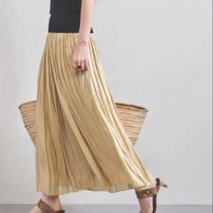 Chez toi 플리츠 스커트 광택 골드 허리밴딩 미사용 새상품