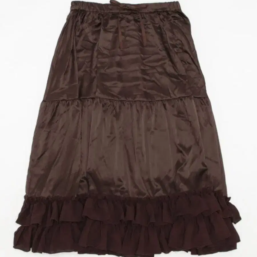 엑시즈팜 미디 프릴 페치 스커트 브라운