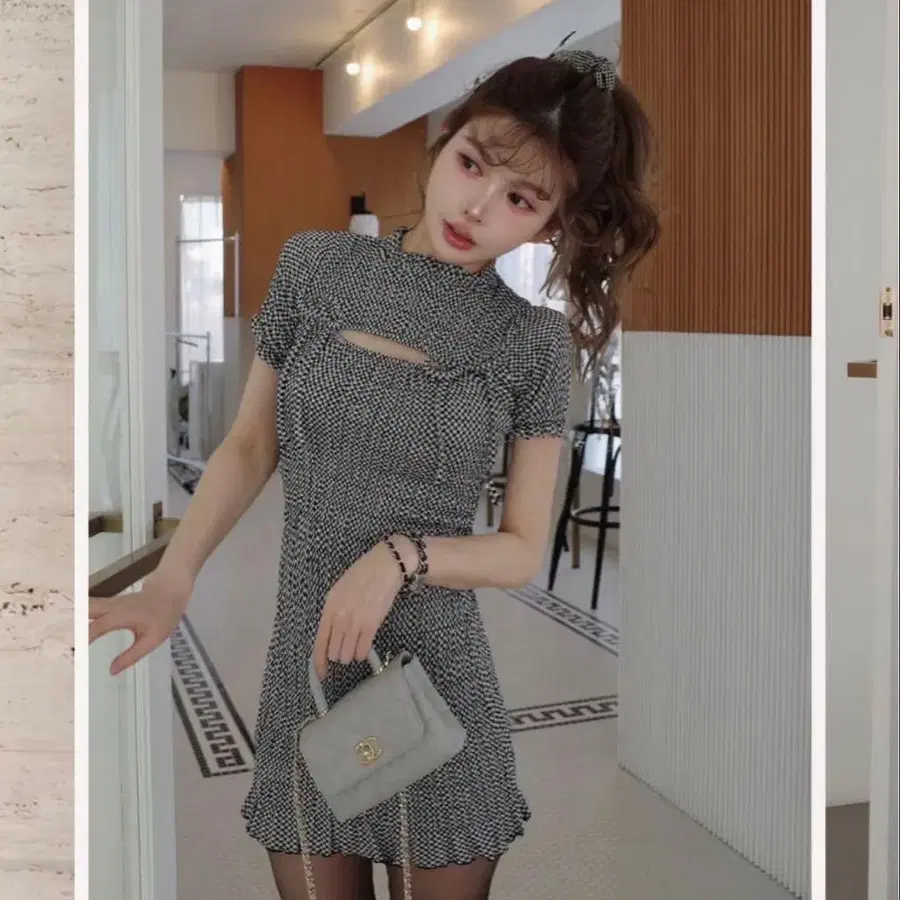Darich 리본 셔링 체크 미니 원피스 택 포함 새상품