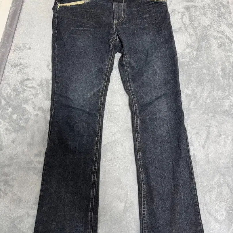 장식 허리 밴딩 다크 블루 스트레이트 데님