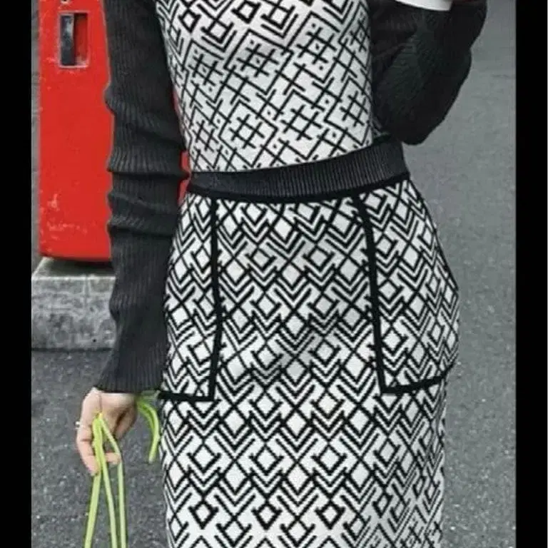 HeRIN.CYE 타이트 스커트 기하학 패턴 니트 셋업