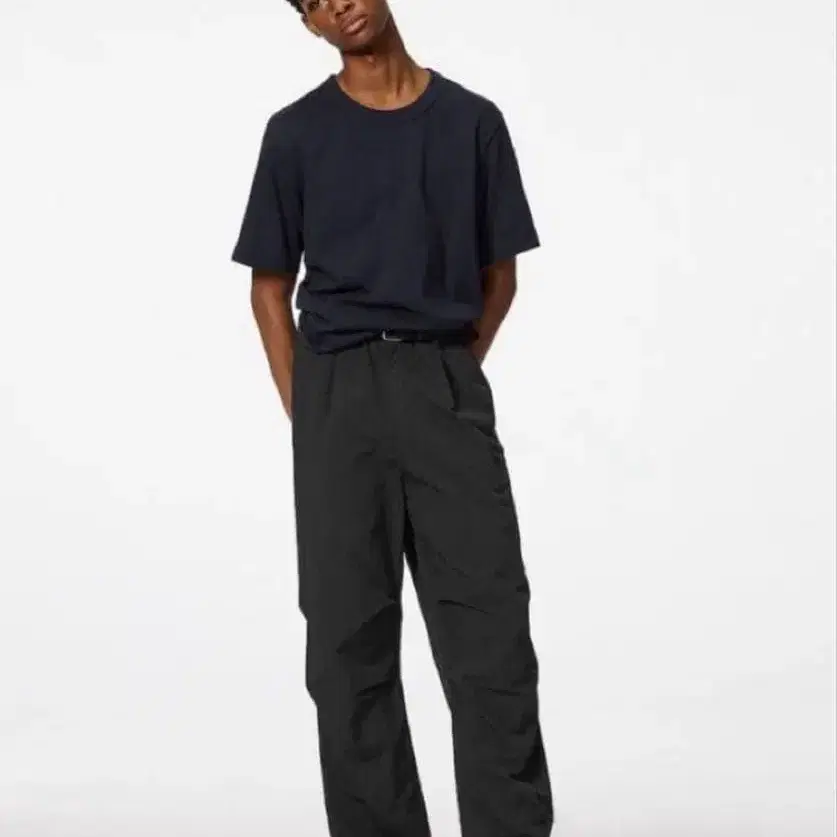 지유 블랙 나일론 지퍼 파라슈트 팬츠 L