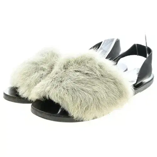 BARNEYS NEWYORK 퍼 소재 블랙 오픈토 샌들