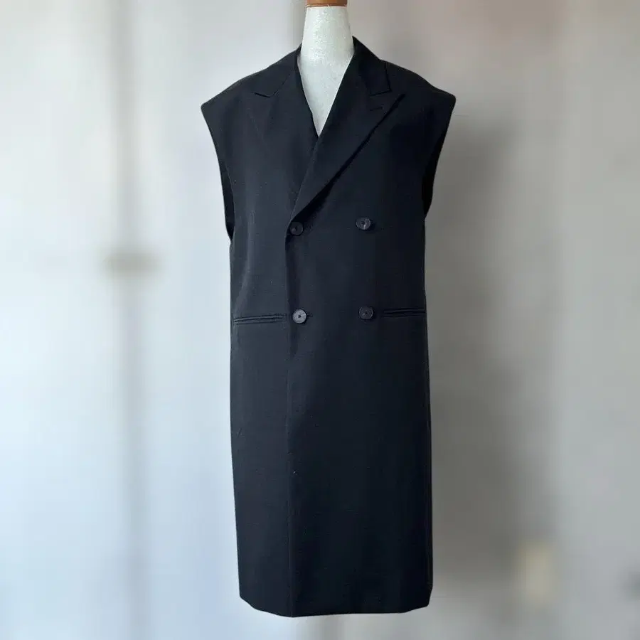 블랙 더블 브레스트 슬리브리스 베스트