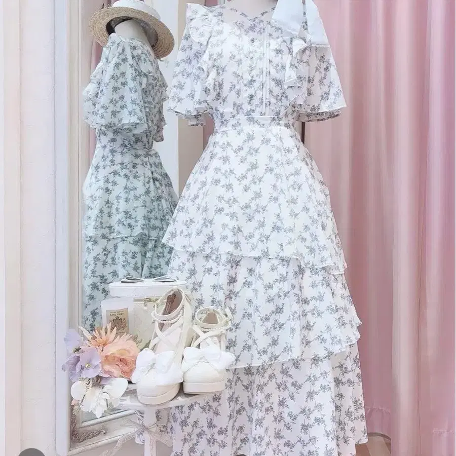 amavel Floral pattern 아지메 티어드 롱 원피스