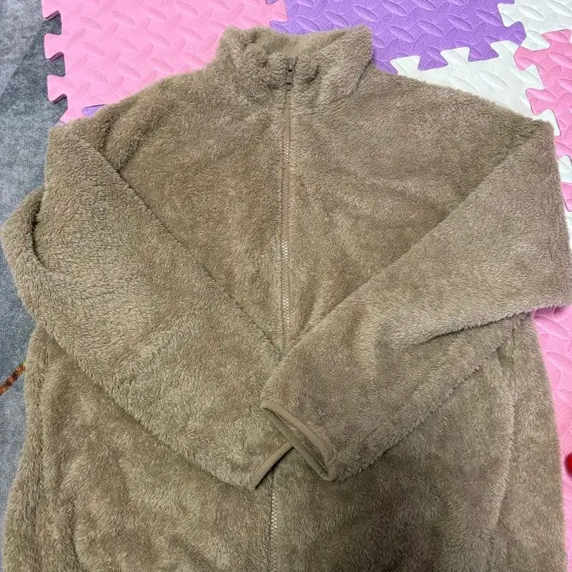 남성용 UNIQLO 유니클로 베이지 플리스 자켓 풀 집업