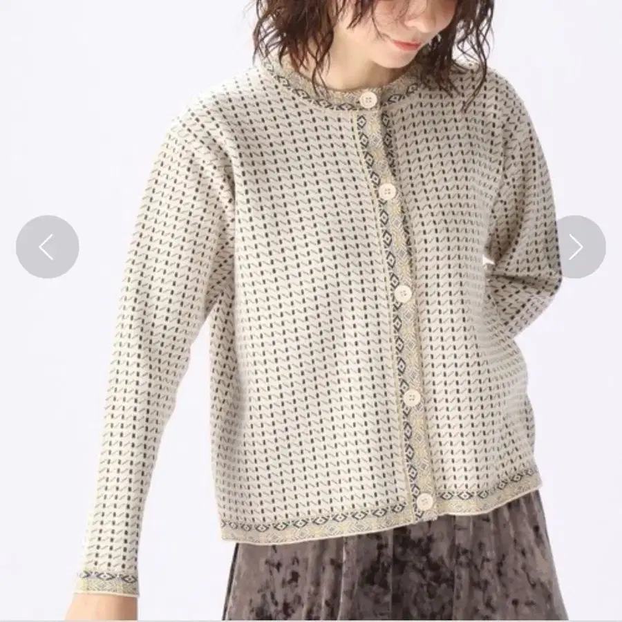 niko and - 모듬 패턴 자카드 숏 가디건 베이지