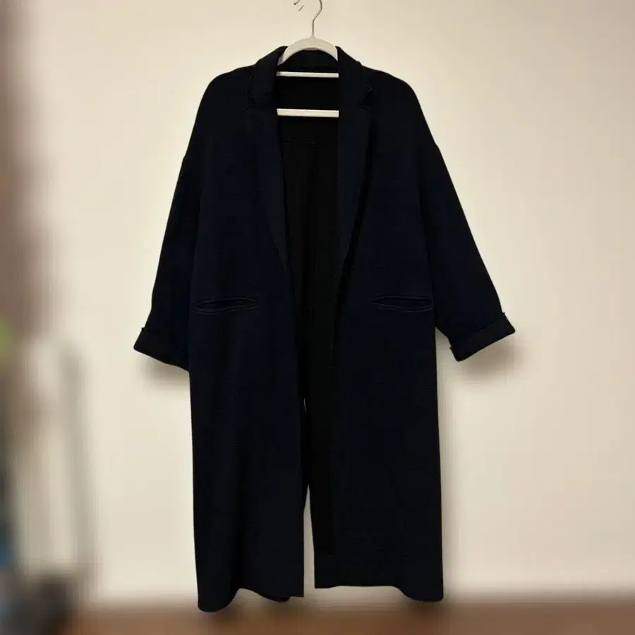 맥피 투모로우랜드 오픈 프론트 롱 코트 네이비