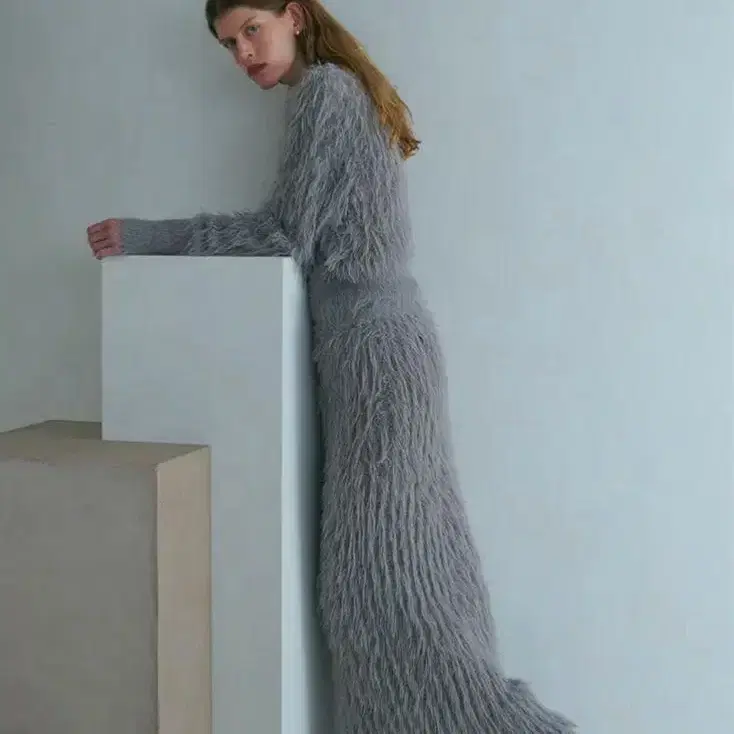 ReNAVE 멜티 샤기 니트 롱 스커트