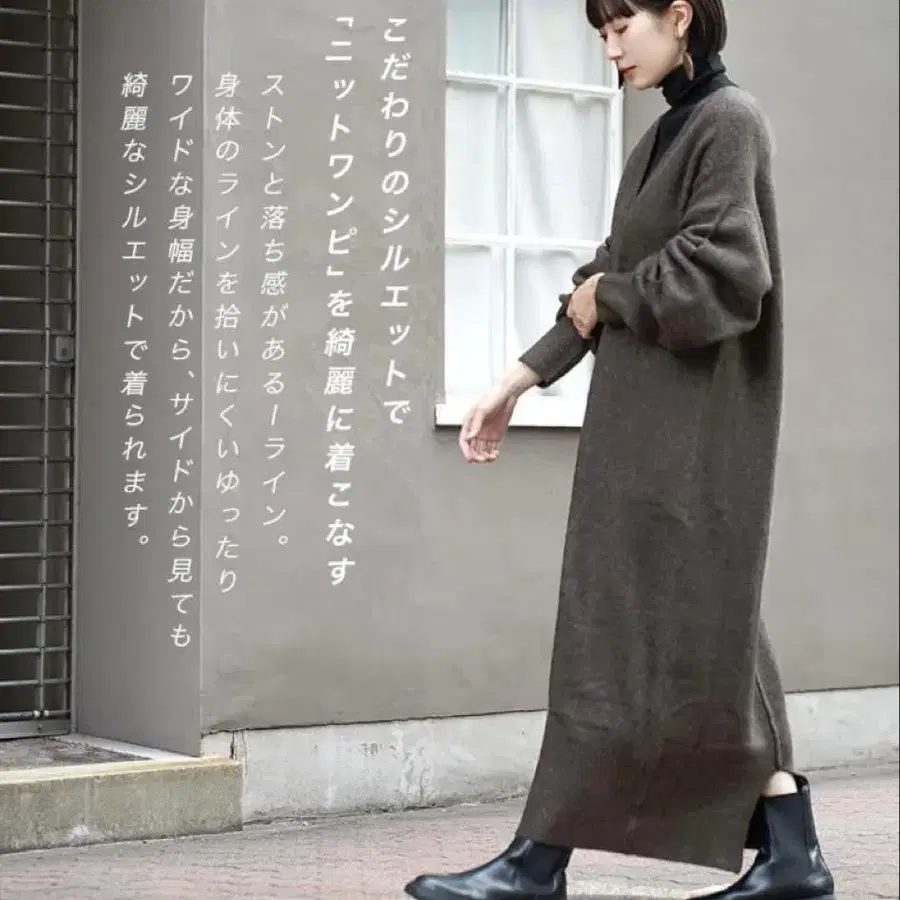 zootie V넥 루즈 니트 원피스 맥시 길이