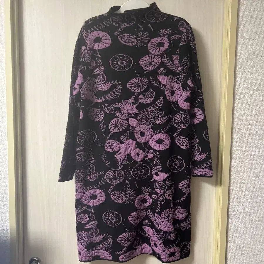 블랙 보라색 꽃무늬 터틀넥 롱 스커트