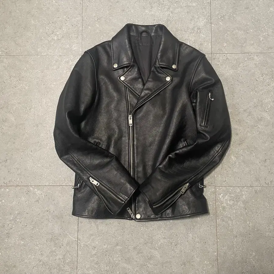 컨디션 최상 더블 라이더스 천연 가죽 주름 가죽 블랙