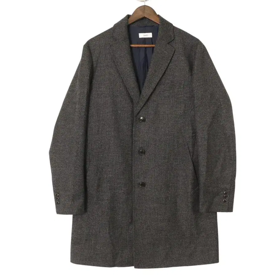 SHIPS 체크 무늬 스텐카라 코트 그레이