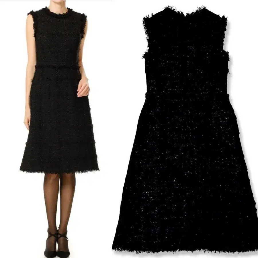 프린지 트위드 원피스 블랙