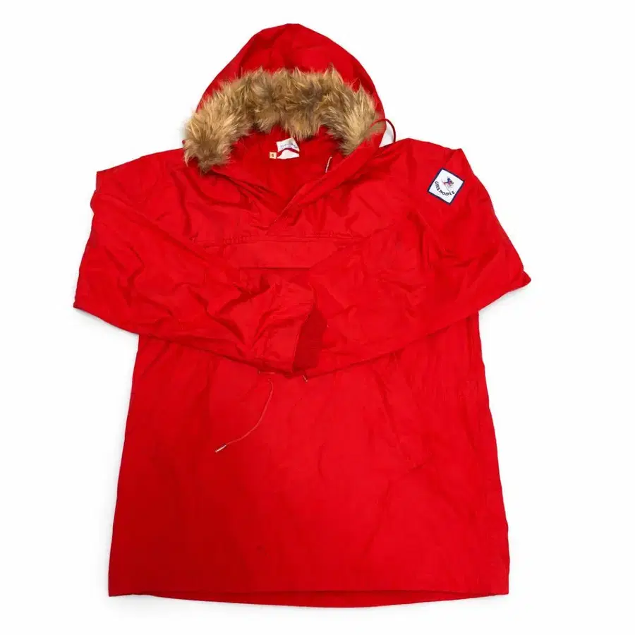빨간색 퍼 후드티 풀오버 구제 의류