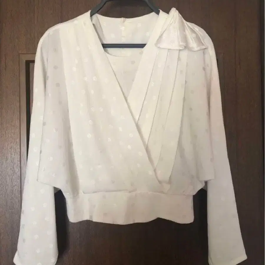 화이트 도트 무늬 랩탑 긴팔 블라우스 리본 포함