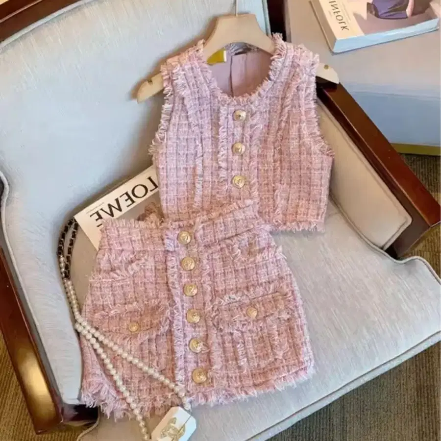 트위드 셋업 미니 드레스 2 피스 핑크 S 사이즈