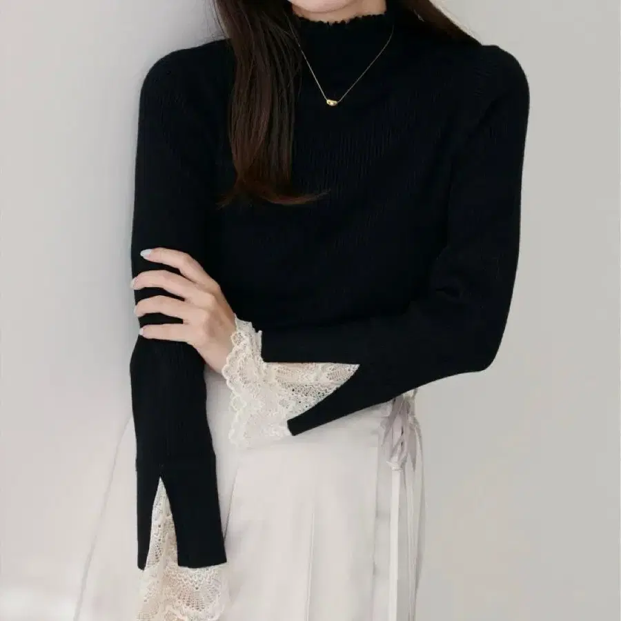 겨울 상품 SALE 미사용, Diagram 블랙 레이스 터틀넥 니트