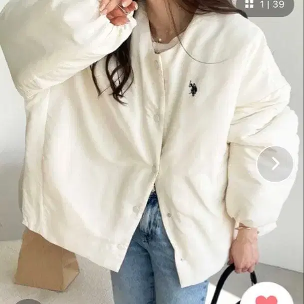 시착만 한 US 폴로 랄프로렌 화이트 다운 자켓 폴로 자수