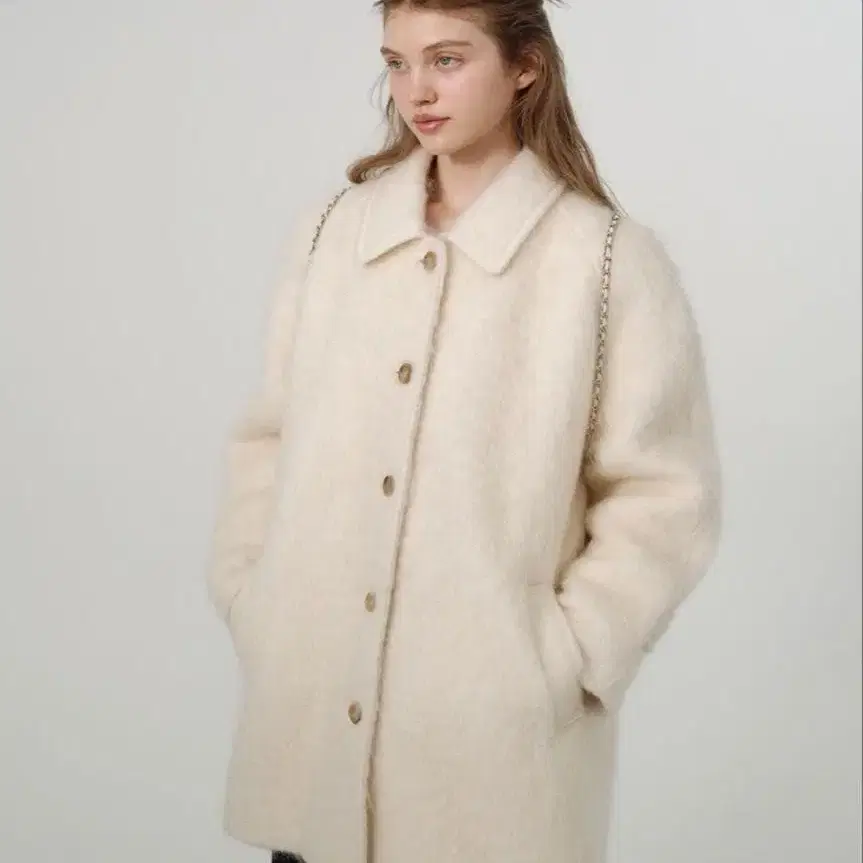 새상품급 The Barnnet 울 샤기 코트 화이트