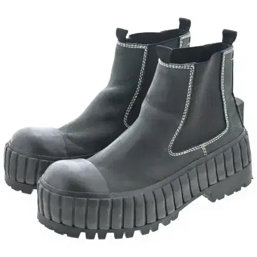 [카르멘사라스] 사이드 고어 부츠 (23.5) 통굽 주름 가죽 블랙