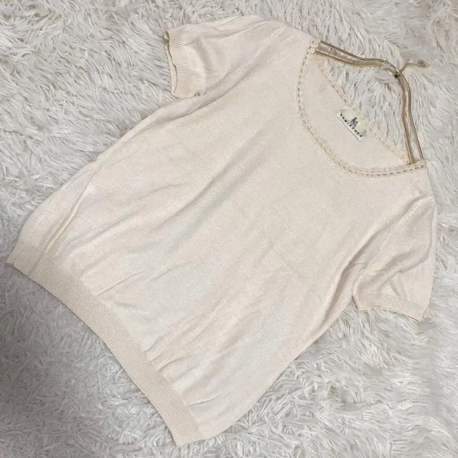 쿠미쿄쿠 반팔 니트 아이보리 30 깔끔한 오피스 청순 심플