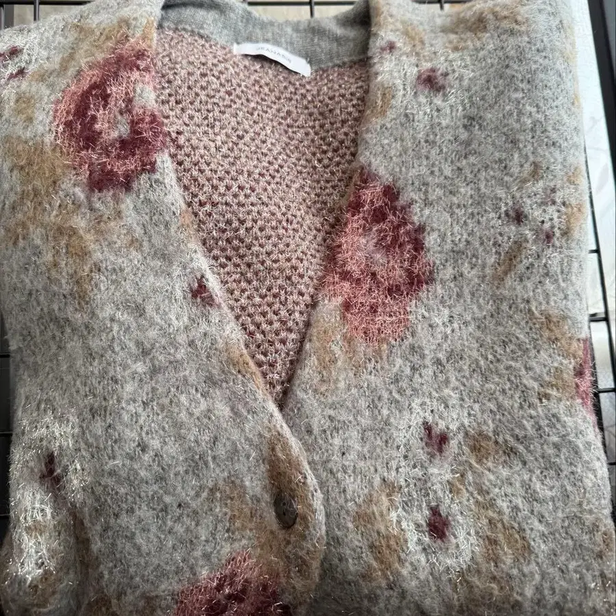 [거의 미사용입니다!] JEANASIS 꽃무늬 니트 가디건 긴팔 그레이