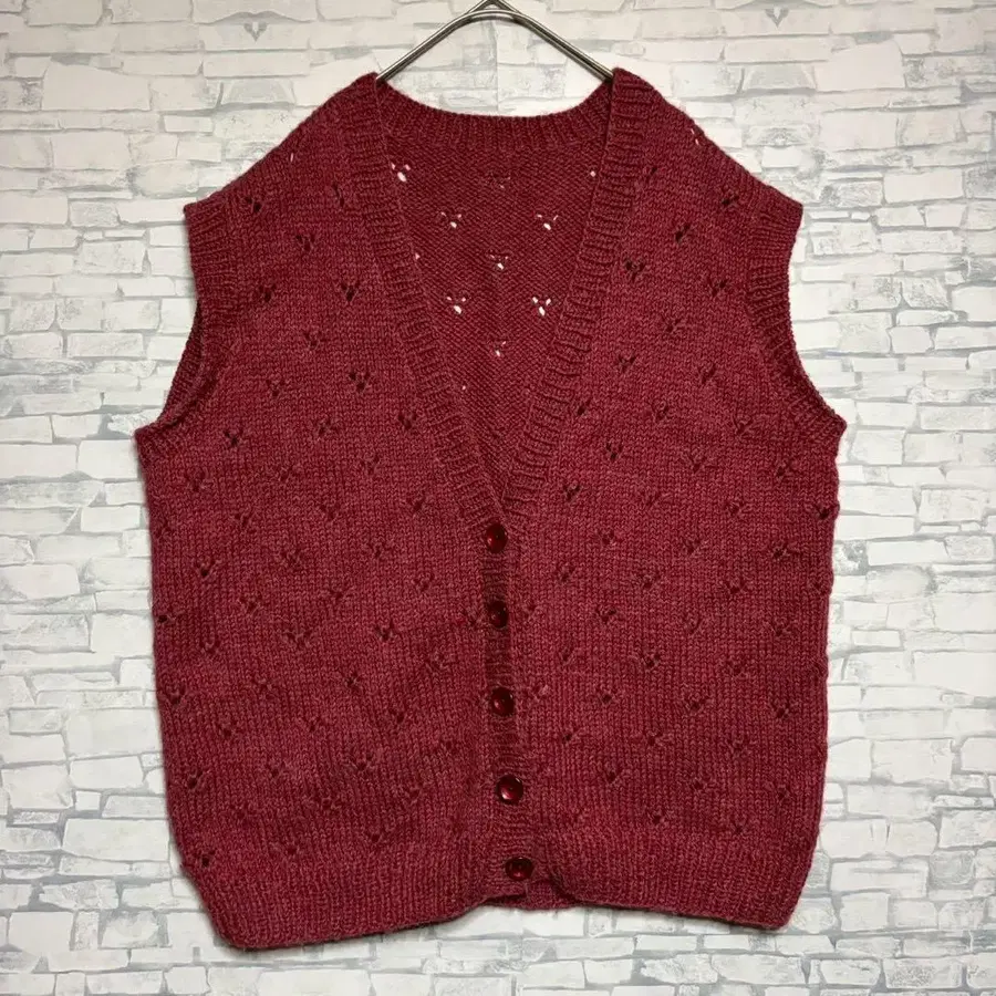 와인 레드 니트 가디건 앞 버튼 새상품급