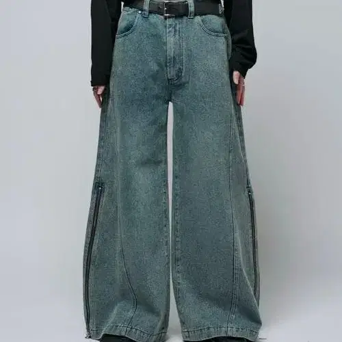 새상품 [ Neucon ] 와이드 배기 사이드 ZIP 플레어 데님 팬츠
