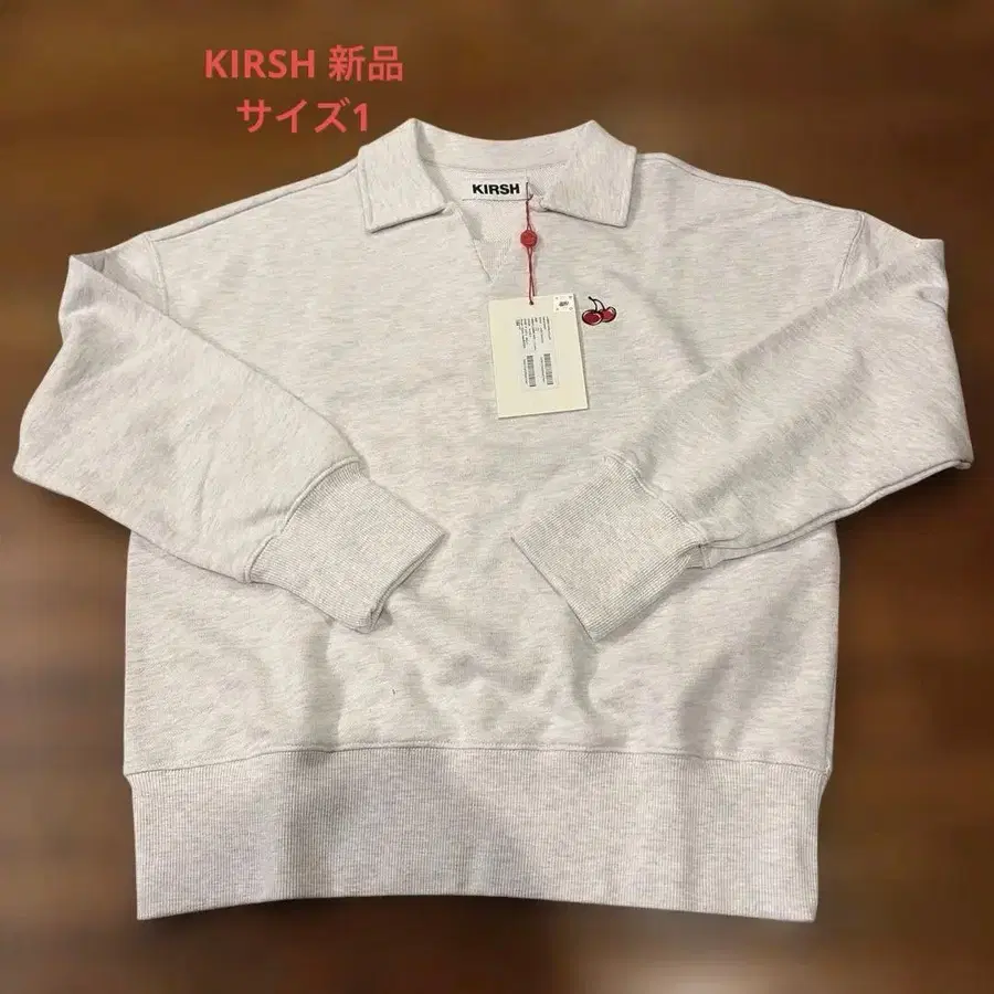 미사용 새상품 KIRSH 체리 자수 피케 셔츠 그레이 키르시