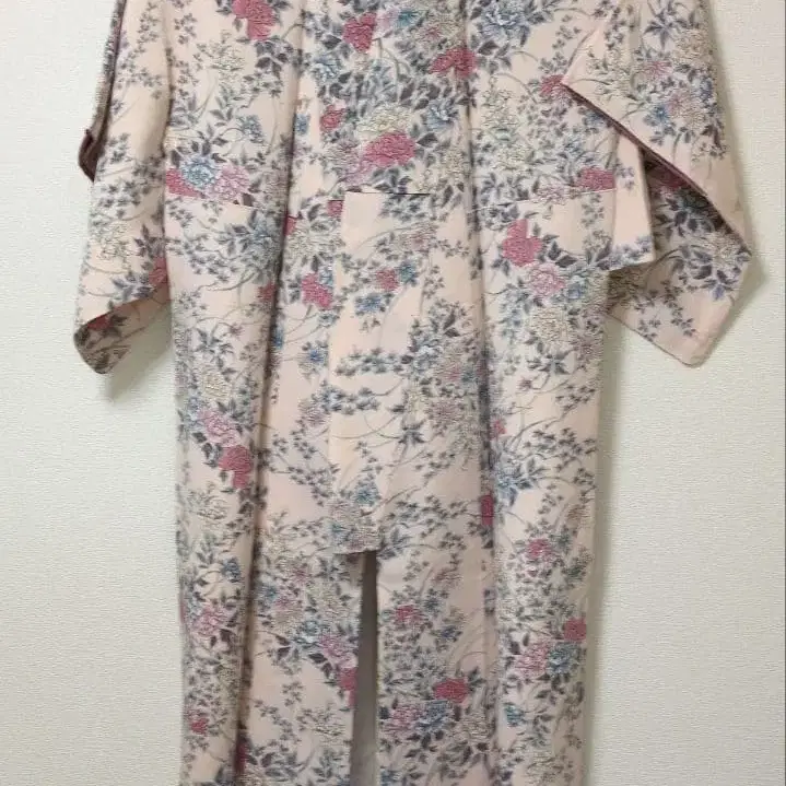 연한 핑크 꽃무늬 실크 코몬 기모노 (초목 염색)