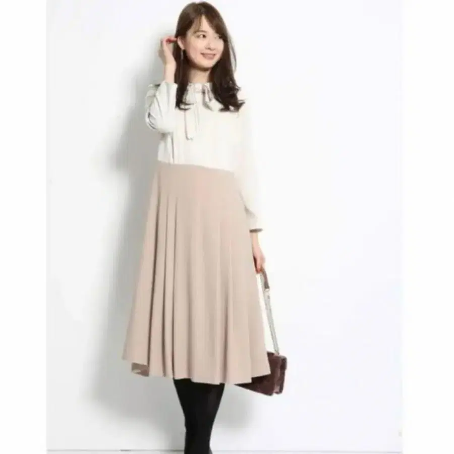 저스길리티 배색 보타이 원피스 베이지