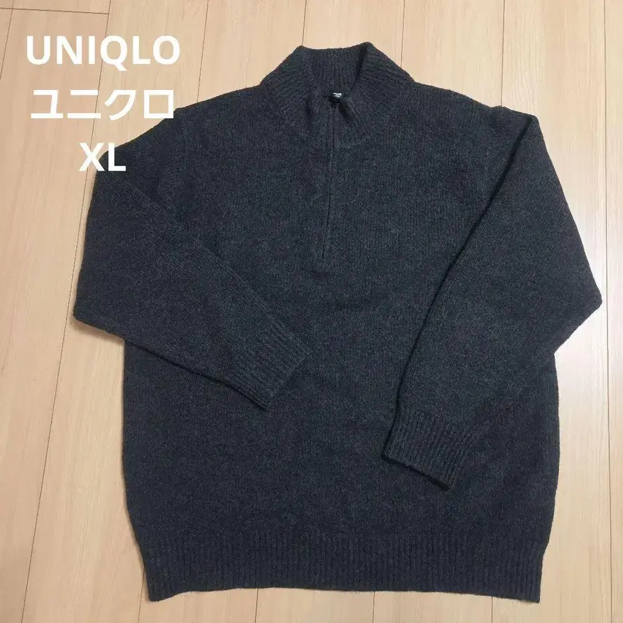유니클로 다크 그레이 하이넥 지퍼 스웨터 XL