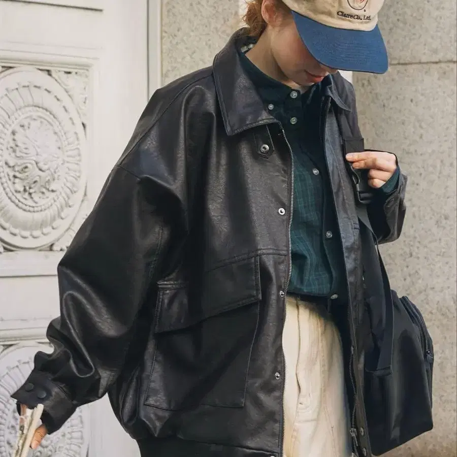 비익 디자인 빈티지풍 오버 사이즈 블루종