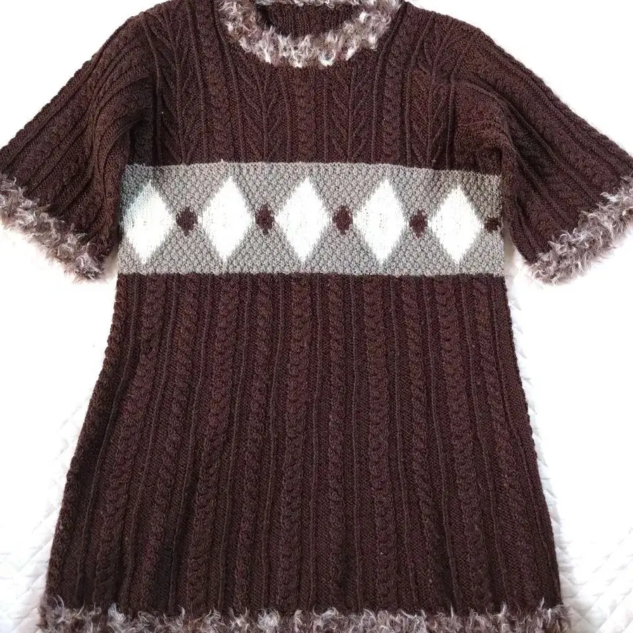 손뜨개질 아가일 무늬 니트 스웨터 칠부 소매