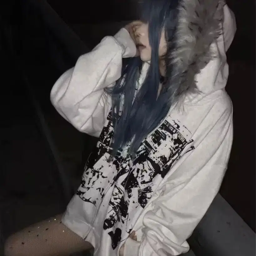 y2k 서브컬쳐 고딕 펑크 퍼 후드티 라이트 그레이