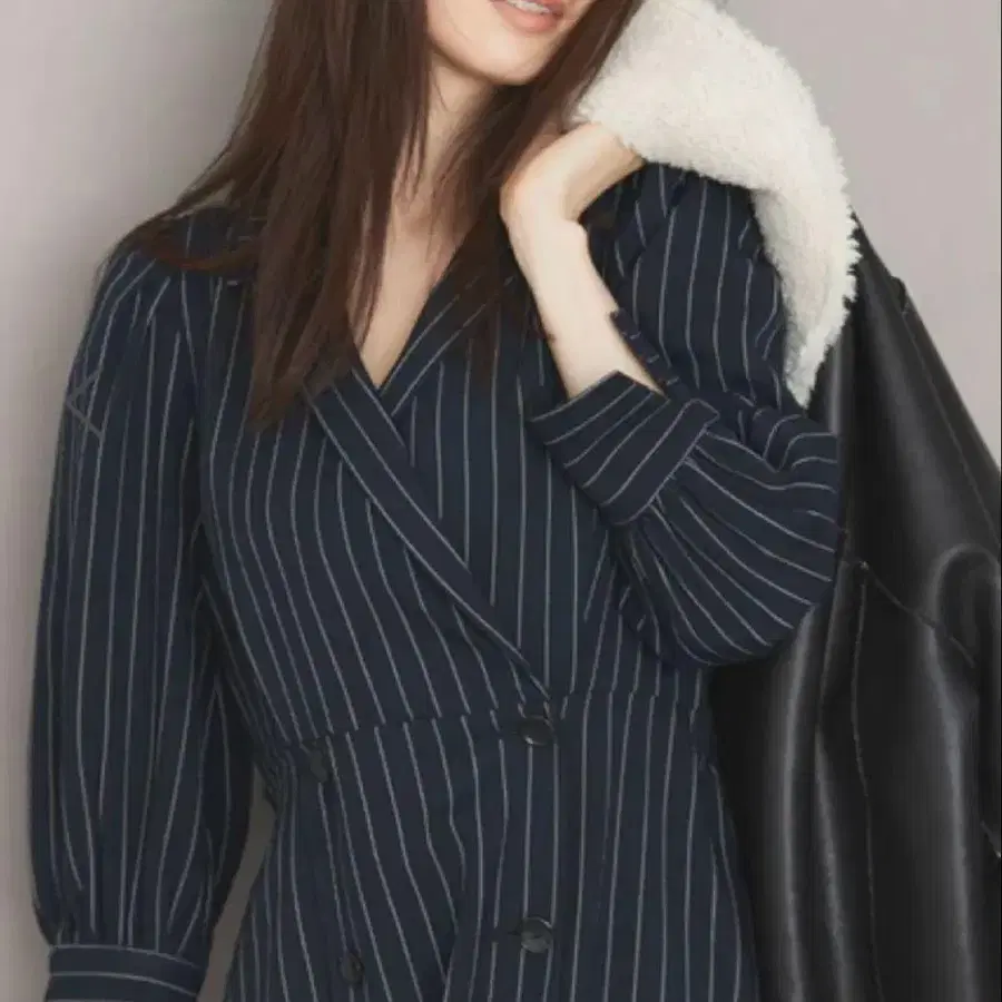 친환경 울 터치 느낌의 적당한 원단 두께가 고급스러움을 더하는 트렌치 스타일 원피스입니다. <POINT> 트렌치 느낌을 살린 카라가 목선을 예쁘게 보여줍니다. 소매 길이를 8분 정도로 하여 촌스러워 보이지 않도록 내추럴함을 살렸습니다. 프론트의 버튼 디테일은 1단째는 실제로 열립니다. 뒤쪽에 밴딩을 넣었지만, 착용이 더욱 부드럽도록 했습니다. [ 소재 ] 부드럽고 적당한 광택이 고급스러운 인상을 주는 플란넬 소재. 세탁기 관리가 가능하고 주름이 잘 생기지 않는 소재라 평소 사용하기 좋습니다. 재생 폴리에스테르 30%를 사용한 지속가능성 소재입니다. [ 색상 ] 네이비 스트라이프 [ 추천 스타일링 ] 기장도 부츠와 함께 입을 수 있도록 평소보다 짧게 했습니다. 플랫슈즈나 펌프스와 함께 코디하면, 깔끔한 인상으로도 연출할 수 있어, 상황에 맞춰 잡화를 활용해 보세요. ----------------------------- 안감: 없음 광택감: 없음 비침: 없음 신축성: 없음 허리: 뒷면 밴딩 포켓: 있음 버튼: 있음 (개폐 가능) 원단 두께: 보통 계절: 가을~봄 ----------------------------- 브랜드: Vis 상태: 1~2회 착용. 눈에 띄는 얼룩 등은 없지만, 사용했던 제품임을 이해하신 후 신청해 주세요. 발송: 주말에 대응하고 있지만, 급하신 경우 상담해 주세요. 작게 접어서 보내드립니다. 기타: 취소 (반품)는 삼가해 주세요. - 색상: 네이비 - 디자인: 스트라이프 패턴 - 소매 스타일: 퍼프 슬리브 - 버튼 개수: 더블 버튼 - 기장: 롱 색상 - 네이비 계열 패턴 - 스트라이프 계절 - 가을/겨울 얼룩, 찢김, 냄새 등 - 없음