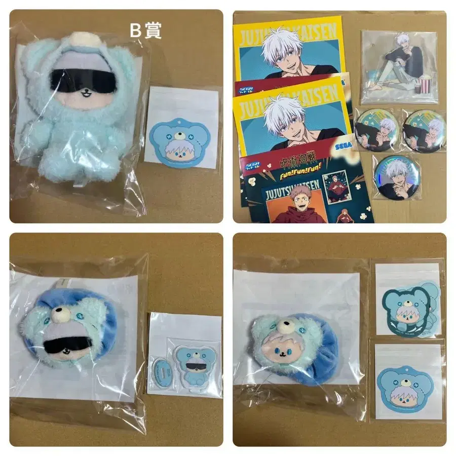 주술회전 봉제 인형 스크런치 럭키 쿠지 아크릴 스탠드 캔뱃지 고죠 사토루