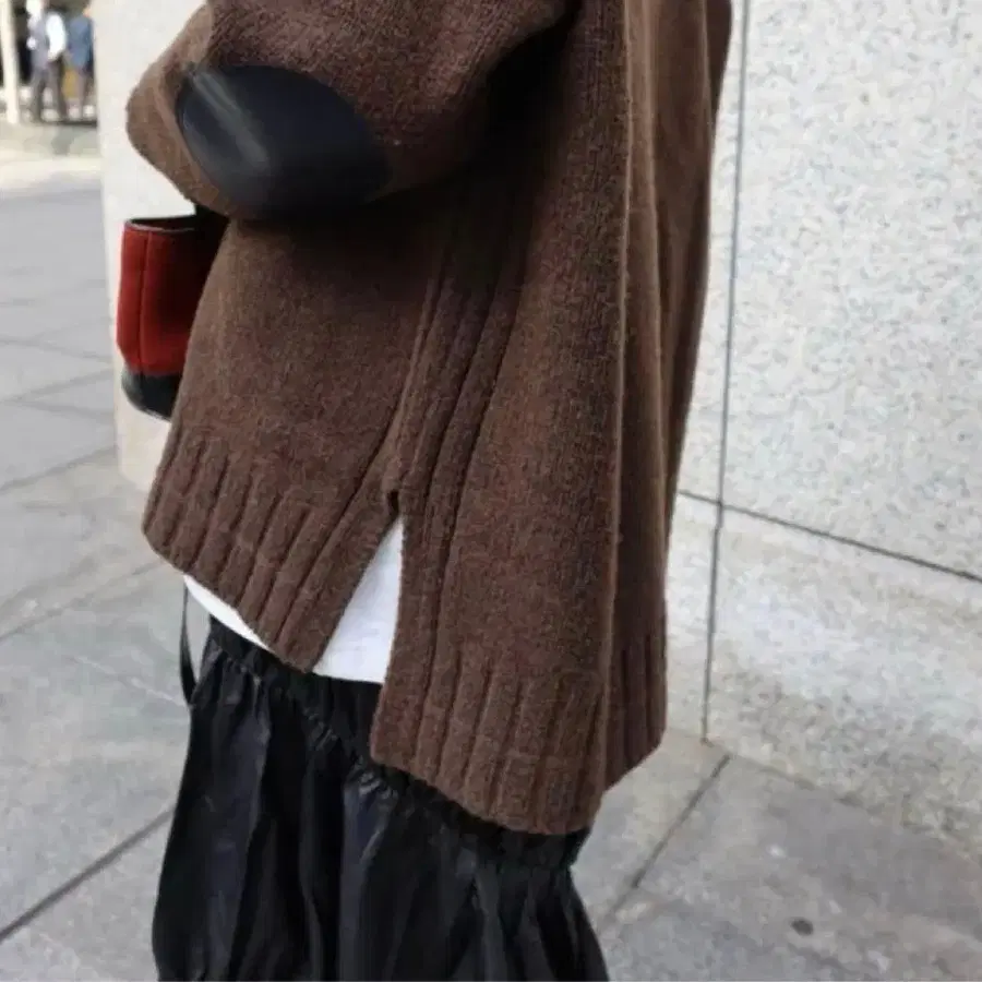 machatt 엘르보 패치 니트 브라운 V넥 니트 긴팔