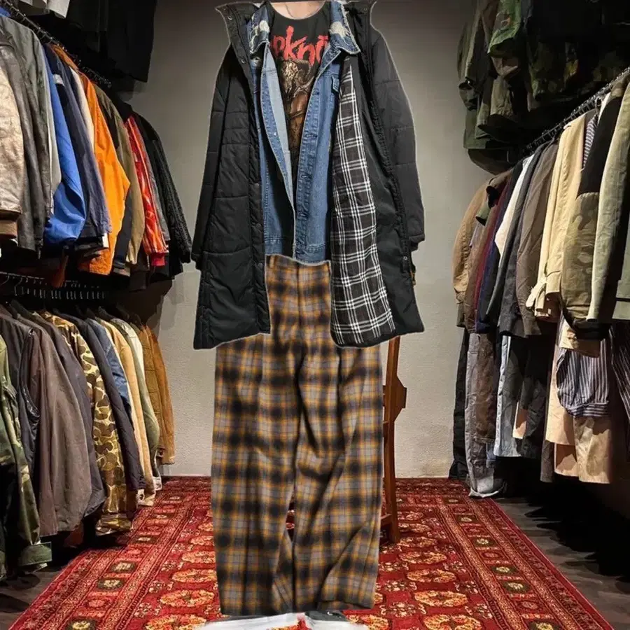90s 빈티지 HUI.N.MEI 후드 탈부착 다운 자켓 방한 쿨한 블랙 다운 자켓을 유럽인과 밴드 스타일로 연출하는 이너 Slipknot에 데님 셔츠를 매치하여 스탠스를 보여주는 코디네이트 아는 사람만 아는 밀리터리와 가치를 융합하는 브랜드 HUI.N.MEI의 대표작이라고 할 수 있는 밀리터리를 파괴한 다운 자켓으로 완성한 1착 90년대의 독특한 실루엣에 밀리터리가 서툰 사람들을 위해 후드를 탈부착할 수 있어 일반 다운으로도 사용할 수 있습니다. 게다가 블록 나눔 퀼팅으로 되어 있어 방한성도 압도적으로 가볍습니다. 코트처럼 무겁지 않아 외출 시 발걸음이 가벼워집니다. 또한 디자인성에도 신경 써서 이너를 체크 무늬로 전환했다는 살짝 슬쩍 앞을 열면 움직일 때마다 체크 무늬가 보이는 최고의 디자인이네요. 90년대 빈티지는 직접 경험하지 않으면 아깝습니다. 꼭 당신의 옷장에 추가하세요. ▷ color ◁ 블랙 ※ 브라우저에 따라 다를 수 있지만 실제 색상에 가깝게 촬영했습니다. ▷ size ◁ 평평하게 놓은 상태에서 단면 측정 [ cm 표기 ] 표기 size LL 표기 기장/82 가슴 너비/59 어깨 너비/50 소매 길이 /64 DS는 소매를 행거에 걸어 측정 ※ 약간의 오차는 이해해 주세요 170/M 사이즈 체형인 제가 입었을 때, ✔️ 참고 저스트 오버 사이즈 ✔︎ 빅 사이즈 [ 소재 ] 65/35 cotton-폴리 주름이 지지 않고, 세탁기로 세탁 가능한 충전솜이 따뜻합니다. [ 상태 ] 데미지 없이 좋음, 오래 사용할 수 있음 검품, 세탁, 검품으로 3회 확인 후 발송하므로 안심하고 구매하세요!! 사이즈 - XL(LL) #다운자켓 #밀리터리자켓 #방한 #추위 대책