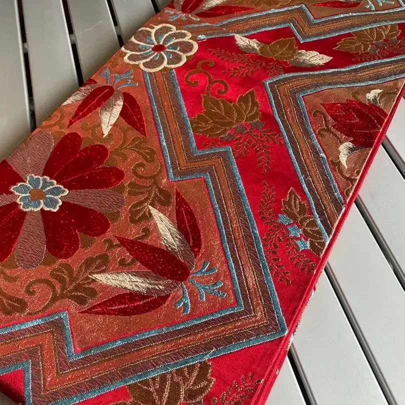 붉은 바탕 금은 자수 후쿠로 오비 성인식 럭셔리 리메이크